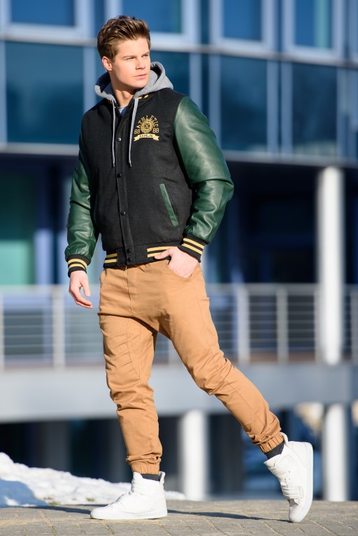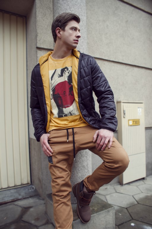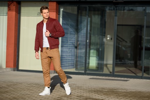 Rewelacyjnie prezentują się również outfity, w których beżowe spodnie męskie chinosy tworzą zestaw z wyrazistą kurtką. Może to być sportowa kurtka bomberka z kontrastowymi rękawami albo modnie pikowana, krótka kurtka przejściowa w mocnym kolorze, np. czerwonym albo bordowym.