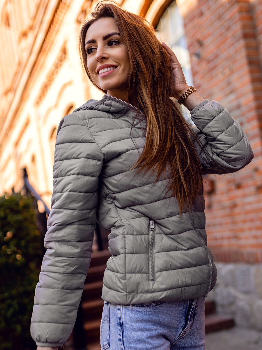 Ostatnia propozycja, choć nazwana jest kurtką przejściową, doskonale sprawdzi się także podczas cieplejszej zimy. Jest krótka, pikowana na całości oraz oczywiście posiada kaptur. Jest stworzona z myślą o aktywnych kobietach, przyda się na zakupach, podczas dojazdów do pracy, czy zawożenia dzieci do szkoły. Jest praktyczna i modna w każdym calu. Posiada zapięcie na zamek oraz dwie zapinane na suwak kieszenie zewnętrzne. Rękawy oraz dół ma zakończone cienką, elastyczną lamówką. Występuje w czterech rozmiarach i sześciu kolorach, granatowym, ercu, żółtym, szarym, czarnym i chabrowym.