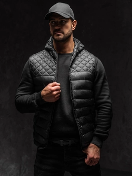 Czarna pikowana kamizelka męska z kapturem Denley HDL88003A1