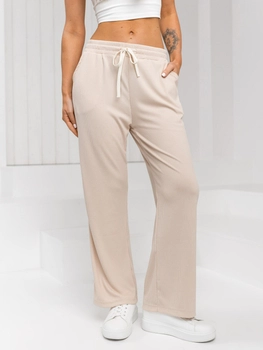 Beżowe prążkowane spodnie dresowe damskie Denley W7858