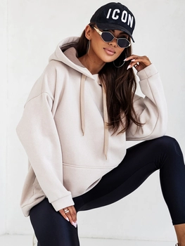 Beżowa długa bluza damska z kapturem Denley YS10005