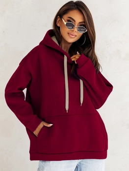 Bluza damska z kapturem ocieplana kangurka bordowa Denley 82131