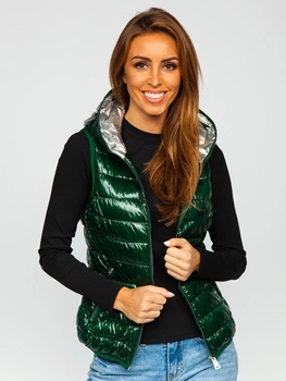 Zielona pikowana kamizelka damska z kapturem Denley 9563