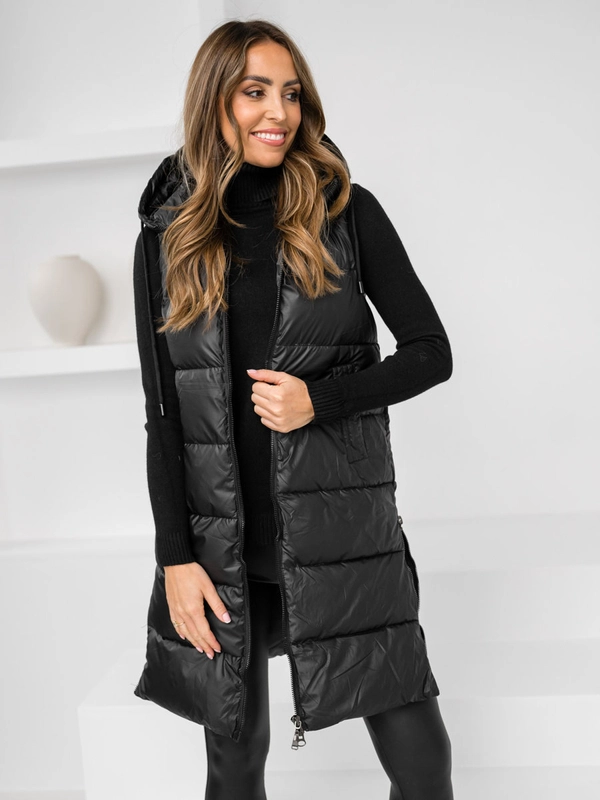 Czarna długa pikowana kamizelka damska Denley 81261B
