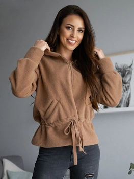 Kurtka damska krótki płaszcz z kapturem brązowa Denley 9320