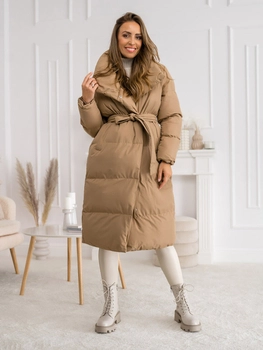 Camelowa długa pikowana kurtka płaszcz damska zimowa Denley 5M737