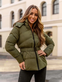 Khaki pikowana kurtka damska zimowa z kapturem Denley 23060