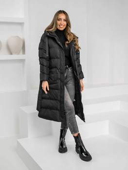 Czarny długi ocieplany płaszcz damski zimowy Denley AN105A