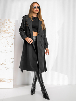 Czarny długi prochowiec płaszcz damski trencz Denley 11Z8193