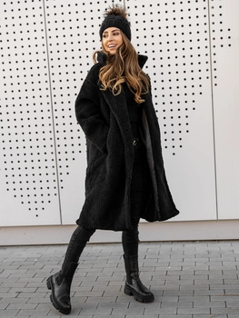 Czarny długi ocieplany płaszcz damski zimowy Denley AN105B
