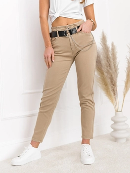 Beżowe jeansowe spodnie damskie z wysokim stanem z paskiem Denley LA689