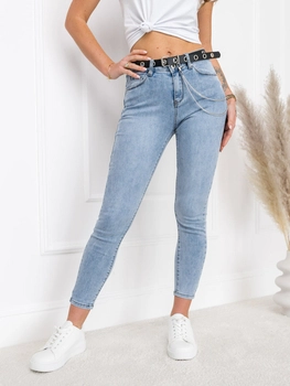 Niebieskie spodnie jeansowe damskie Push Up z paskiem z saszetką Denley A20-2A