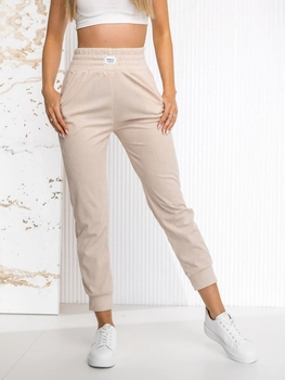 Beżowe prążkowane spodnie dresowe damskie Denley W7863