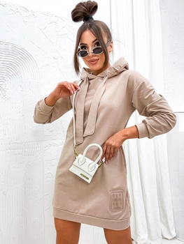 Beżowa dresowa sukienka damska z kapturem Denley 725
