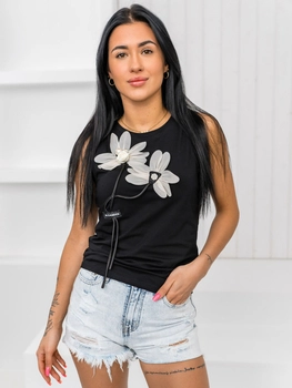 Czarny t-shirt damski bokserka z aplikacją Denley 96T653