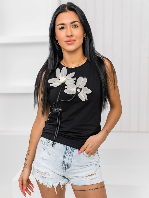 Czarny t-shirt damski bokserka z aplikacją Denley 96T655