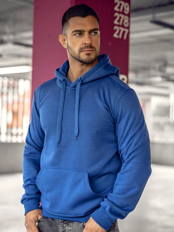 Bluza męska z kapturem chabrowa kangurka Denley 2009A