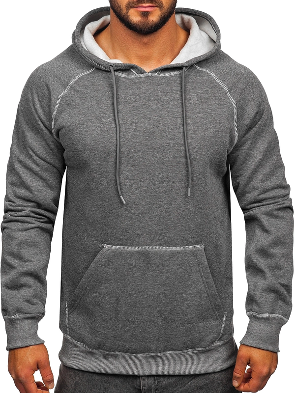 Ciemnoszara z kapturem gruba bluza męska kangurka Bolf 1004