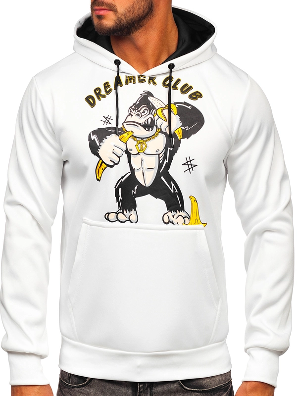 Biała bluza męska z kapturem kangurka z nadrukiem Denley 8B997