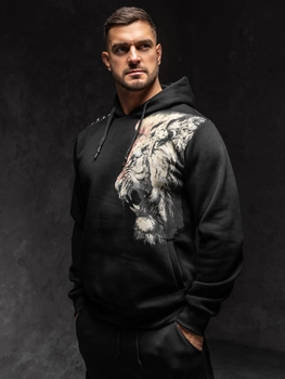 Czarna z nadrukiem bluza męska z kapturem Denley 6161A