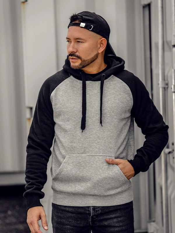 Szara bluza męska z kapturem Denley LM77002
