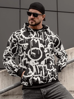 Czarno-biała bluza męska z kapturem kangurka z nadrukiem Denley 8B1152A
