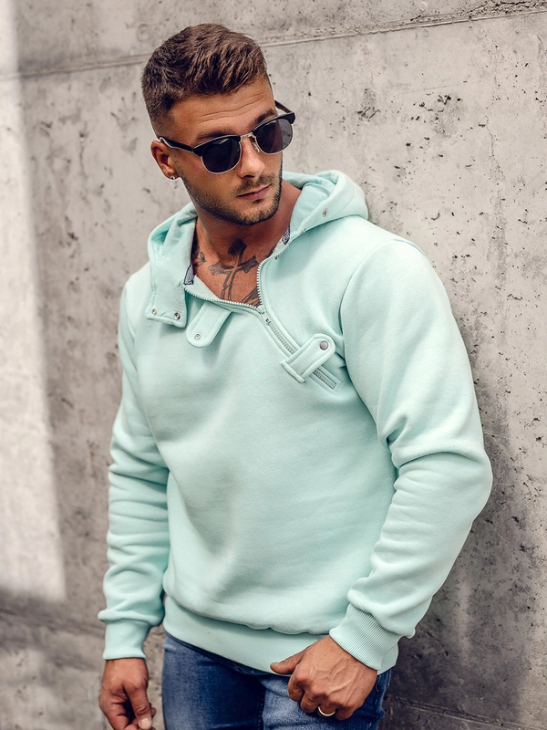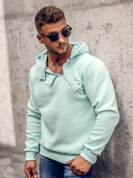 Miętowa gruba bluza męska z kapturem Bolf 06A