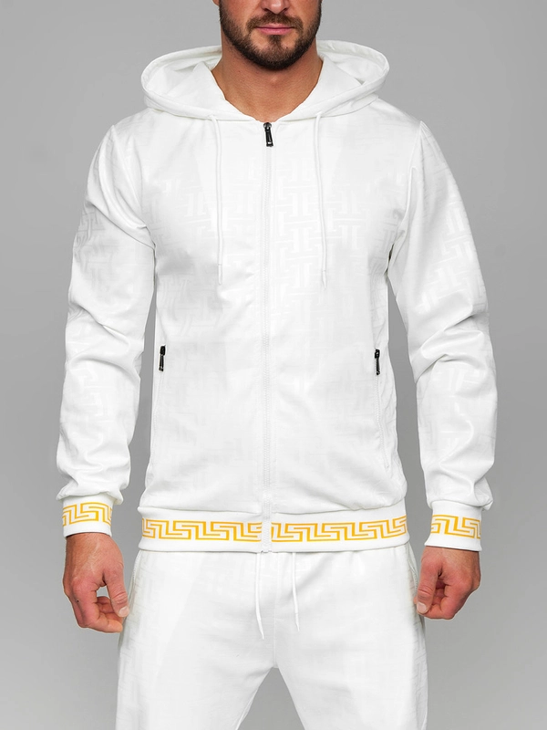 Biały dres męski z bluzą z kapturem kangurką Denley D002