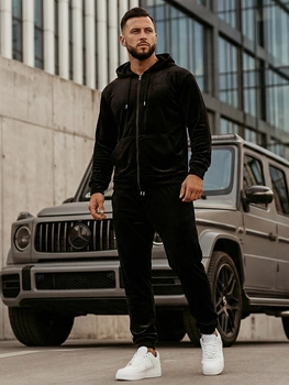 Czarny welurowy dres męski z kapturem Denley 3A82-A