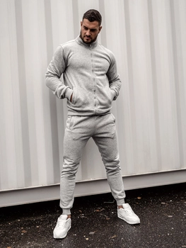 Jasnoszary dres męski z bluzą z kapturem kangurką Denley D002