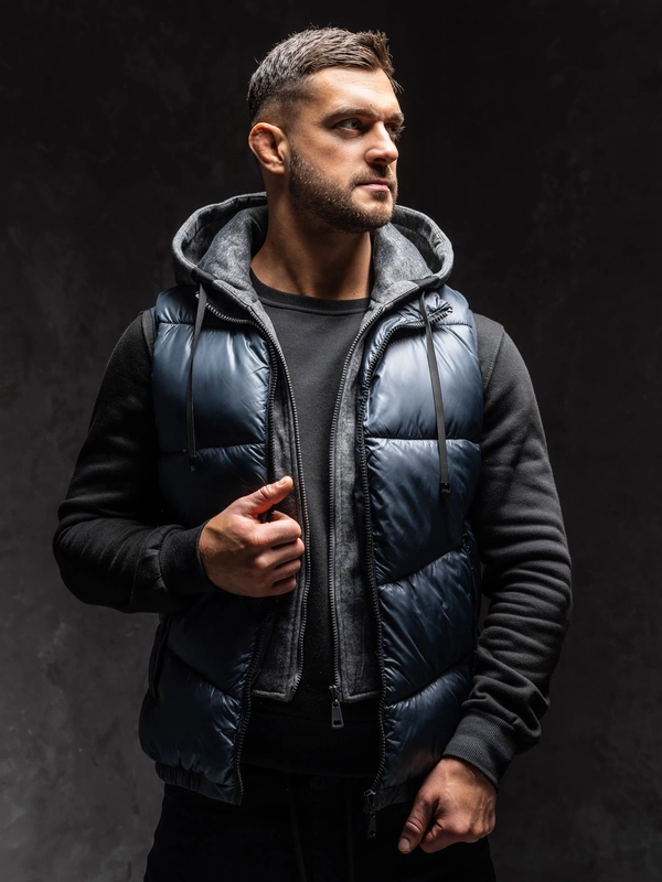 Granatowa kamizelka męska pikowana z kapturem Denley 8M983