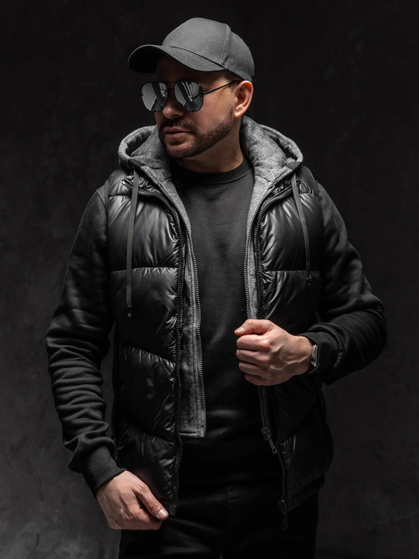 Czarna pikowana kamizelka męska z kapturem Denley HDL88003A1