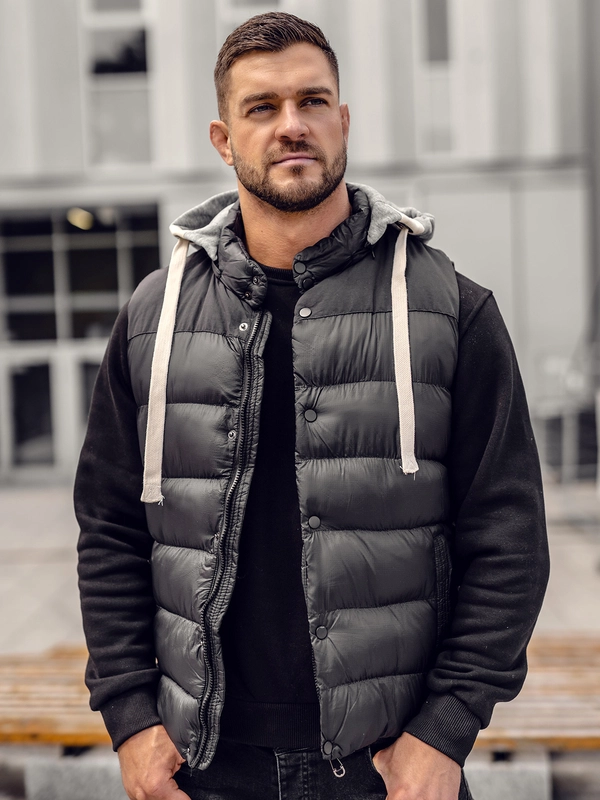 Czarna pikowana kamizelka męska z kapturem Denley LY36A1