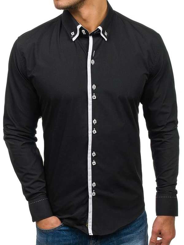 Koszula męska z długim rękawem czarna Bolf 5791