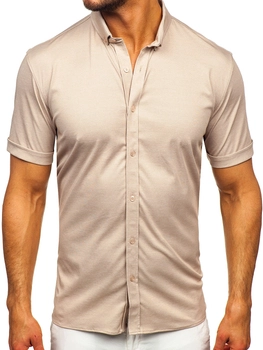 Beżowa koszula męska z krótkim rękawem Denley 2005