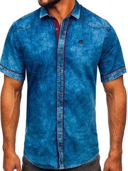 Niebieska koszula męska jeansowa z krótkim rękawem Denley 19640