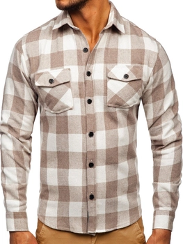 Beżowa koszula męska flanelowa z długim rękawem Denley 20723