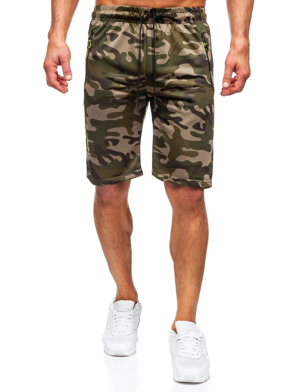 Zielone dresowe krótkie spodenki moro męskie Denley JX865