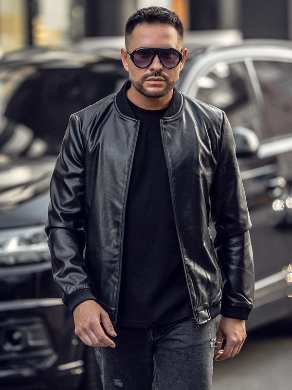Czarna skórzana kurtka bomberka męska Denley 11Z8105