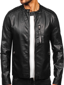 Czarna skórzana pikowana kurtka męska zimowa biker Denley 11Z8186