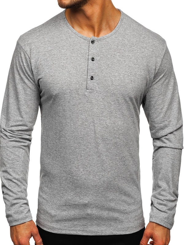 Longsleeve męski zapinany na guziki szary Bolf 1114