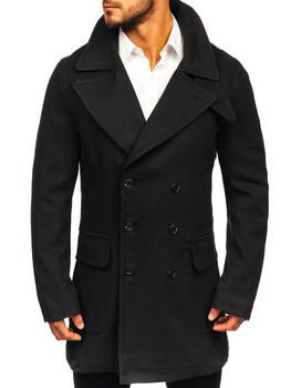 Czarny dwurzędowy płaszcz męski zimowy Denley 79B3
