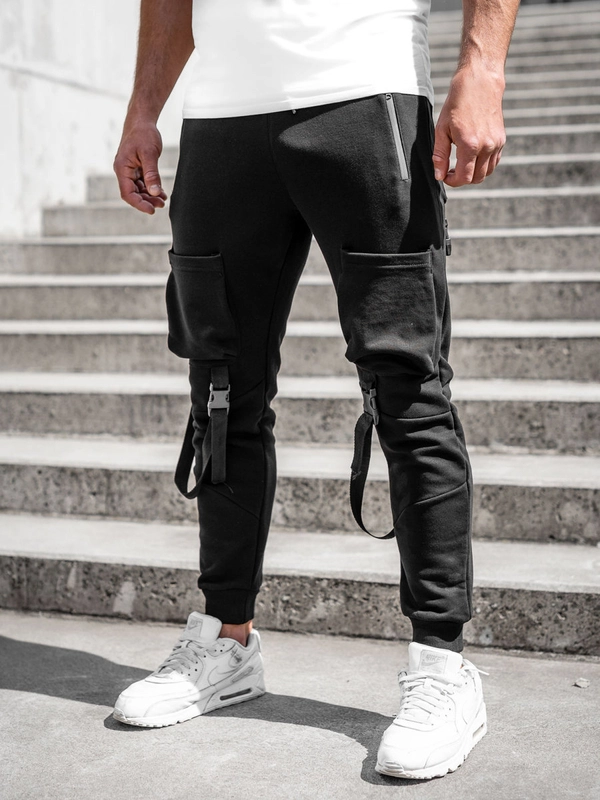 Czarne spodnie materiałowe joggery bojówki męskie Denley S201A