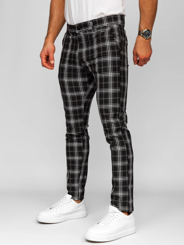 Czarno-białe spodnie materiałowe wizytowe w kratę męskie Denley 184147