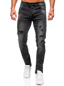 Czarne spodnie jeansowe męskie skinny fit Denley KX565-1