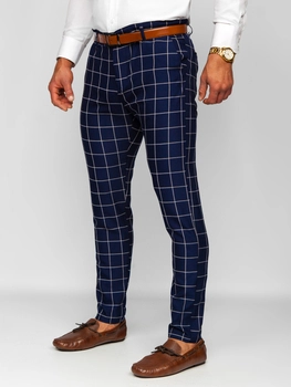 Granatowe spodnie materiałowe wizytowe w kratę męskie Denley 0047