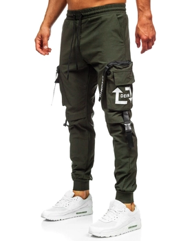 Khaki spodnie materiałowe joggery bojówki męskie Denley 384