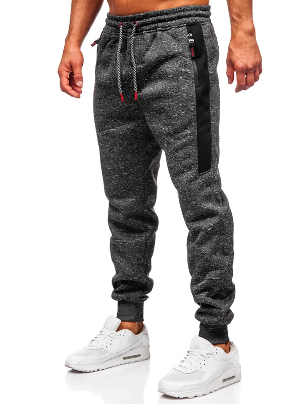 Grafitowe ocieplane spodnie męskie joggery dresowe Denley Q1104