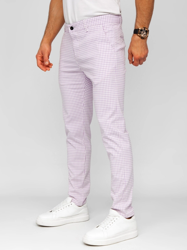 Fioletowe spodnie materiałowe wizytowe w kratę męskie Denley 184143