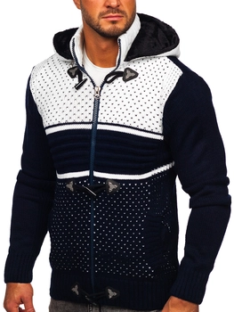 Gruby granatowy rozpinany sweter męski z kapturem kurtka Denley 2047